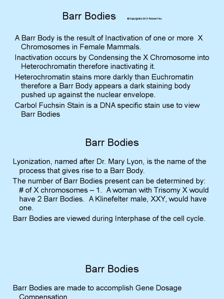 Barr Body Is Defined As A Highly Stained Inactivated Condensed X Chromosome Found In Every Somatic Cell Of Most Female Animals And.