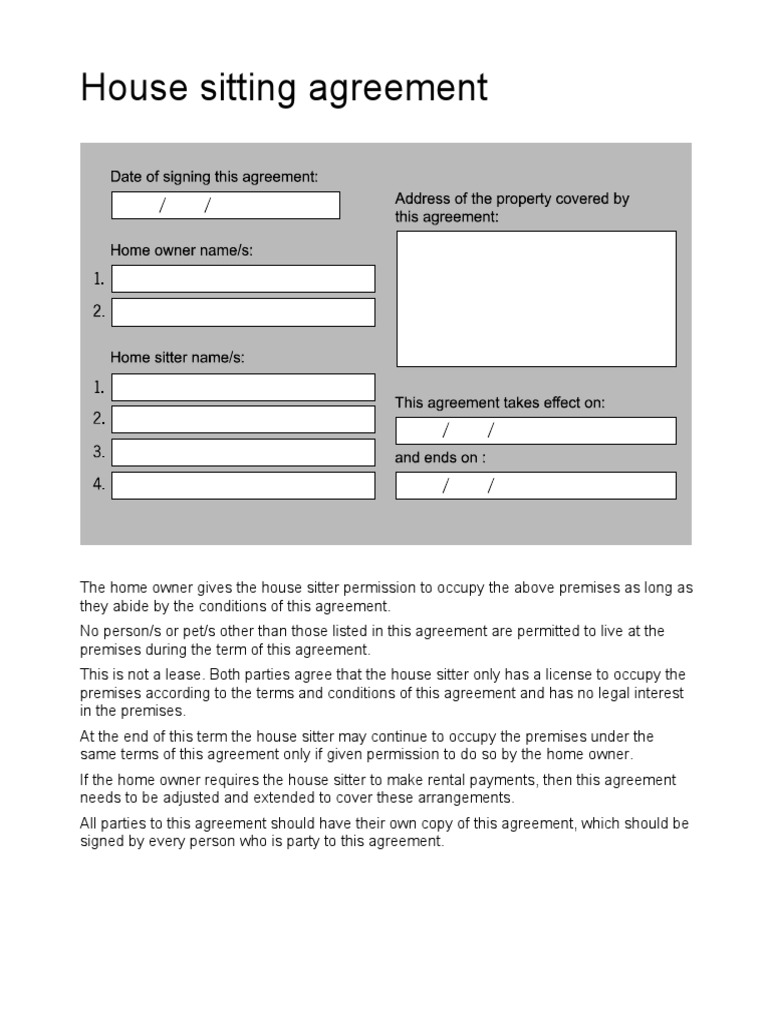 Learn why you may need a house sitting agreement form and how to create one. This file provides a template for creating a house sitting agreement between homeowners and house sitters to ensure clear expectations. Will give the house sitter reasonable notice if return dates are to be. Find templates from trusted house sitters and.