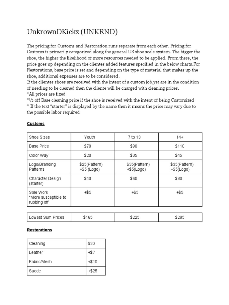 Price Sheet
