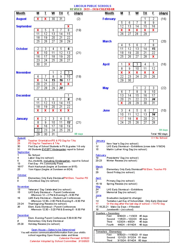 [LPS] Lincoln Public Schools Calendar with Holidays 20232024