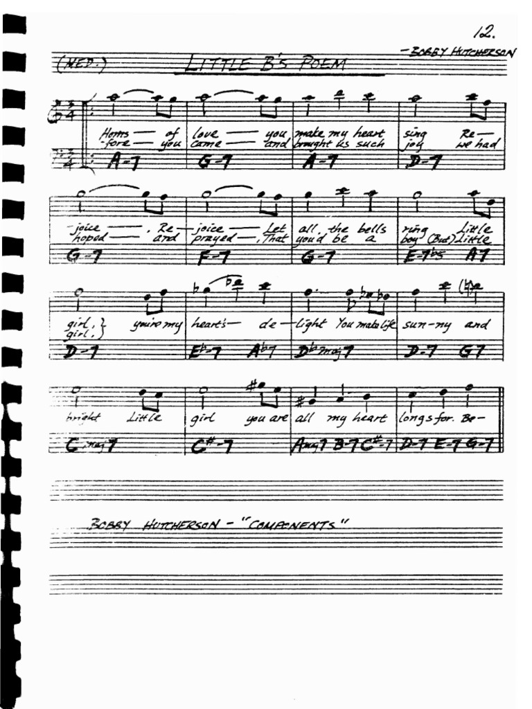 Little b's poem bobby hutcherson arr. Share, download and print free sheet music of little b's poem bobby hutcherson for piano,. Lead sheet (singers key) little b's poem. Lead sheet (singers key) little b's poem. 6e ©2016 6e 4/16/2016 bb lead sheet.