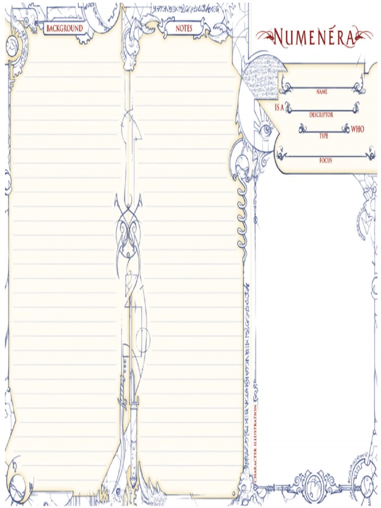 Numenera Character Sheet - I took the official numenera character sheet and turned it into an editable, saveable pdf. The numenera character portfolio is a character sheet and so much more.