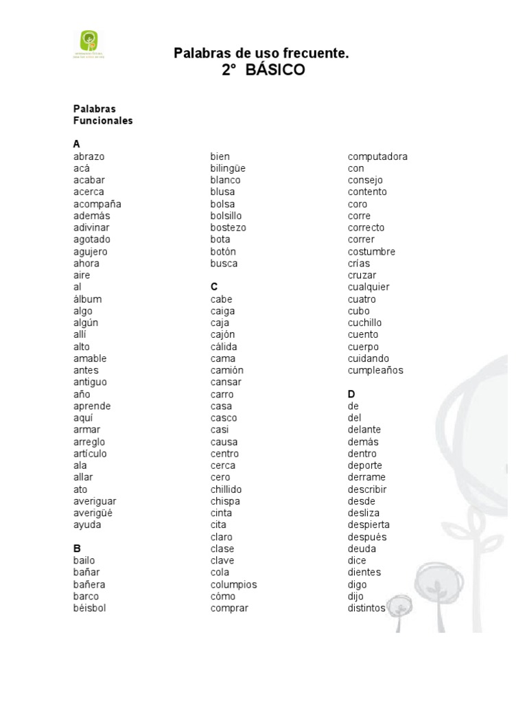 En este video podremos practicar las palabras de uso frecuente, hasta lograr que. Study with quizlet and memorize flashcards containing terms like de, la, que and. Las palabras en letra obscura corresponden a las palabras de uso frecuente en lectura de.