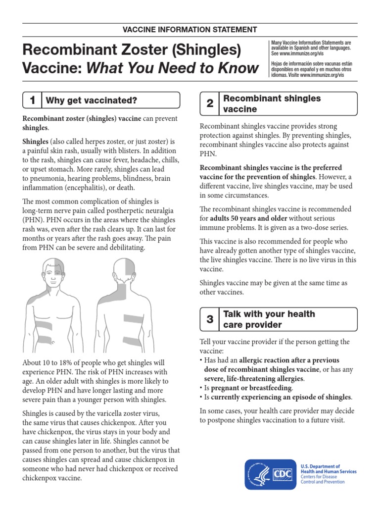 Vaccine information statements (viss) are information sheets produced by the cdc that. Shingles is a painful skin rash, often with blisters. What you need to know 1. Live zoster (shingles) vaccine can prevent shingles.