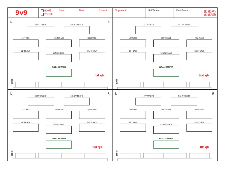 Soccer Formation Lineup Sheet 9v9 332 PDF Defender (Association