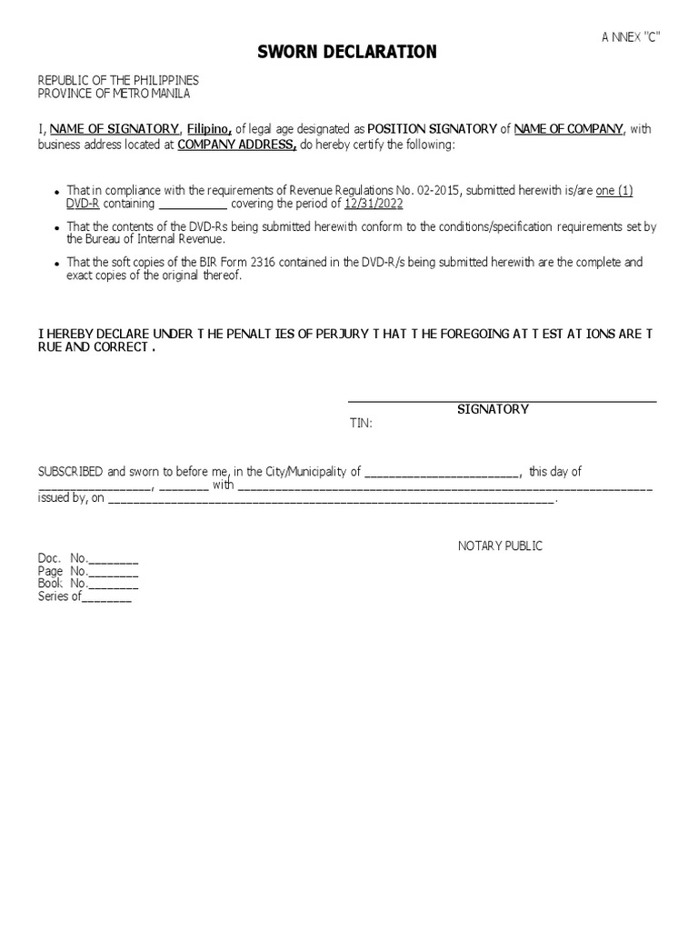 Bir Form 2316 Sworn Declaration PDF