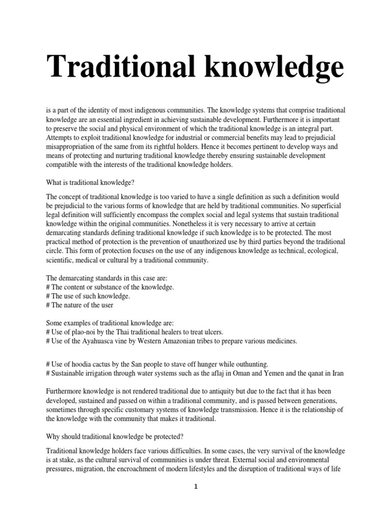 Traditional Knowledge PDF Traditional Knowledge Intellectual Property